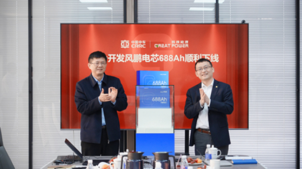 1月21日,中车株洲所与鹏辉能源联合开发的风鹏电芯688Ah正式下线,中车株洲所综合能源事业部党委书记、总经理唐远远等领导团一行莅临鹏辉能源见证仪式,鹏辉能源董事长夏信德等共同参与这一重要时刻,标志着储能行业正式迈入“双六时代”!