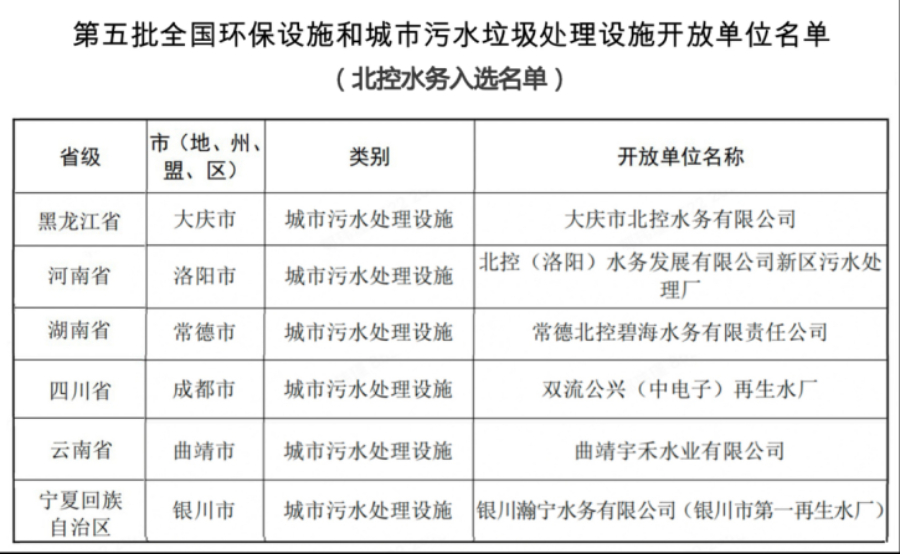 近日,生态环境部办公厅公布了第五批全国环保设施和城市污水垃圾处理设施向公众开放单位名单,北控水务旗下6座水厂凭借在环保设施建设、运营管理及公众环保教育方面的出色表现成功入选。此次入选不仅是北控水务技术实力与运营能力的体现,更是集团推动环保科普、践行社会责任的坚定承诺。