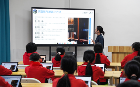 绿色公益、低碳赋能。港华智慧能源与东亚银行充分发挥绿色能源优势,通过太阳能系统为“绿色萤火虫乐园”的电教设备供电,减少传统能源消耗,降低碳排放。在绿色数字化教室里,岳池港华员工与乔家小学老师共同开展了燃气安全知识课堂,通过燃气安全教育视频及专业的知识讲授,为学生们撑起安全呵护伞。